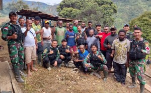 OTENTIK (BANDARLAMPUNG) –Danpos Kiwirok Satgas Yonif 143/TWEJ Lettu Inf Irawan Yudhi Prasetyo, S.Tr (Han) menyapa masyara ...