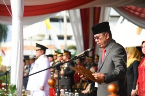 OTENTIK ( BANDARLAMPUNG ) -- Gubernur Lampung Arinal Djunaidi mengikuti Upacara Penurunan Bendera Merah Putih dalam rangka Ha ...