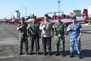 OTENTIK (Lampung) -- Dibawah Komando Letkol Pnb Ripdho Utomo, 7 Pesawat Jupiter Aerobatic Team (JAT) yang mendarat kema ...