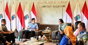 OTENTIK ( LAMSEL ) -- Bupati Lampung Selatan, Radityo Egi Pratama, menerima audiensi manajemen Grand Elty Krakatoa di ruang k ...
