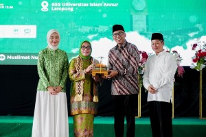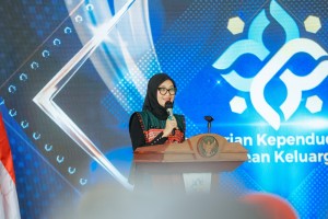 OTENTIK ( Metro ) -- Wakil Gubernur Lampung, Jihan Nurlela, mendampingi Menteri Kependudukan dan Pembangunan Keluarga/Kepala ...