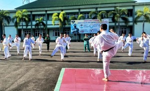 OTENTIK (BANDARLAMPUNG) – Prajurit Korem 043/Gatam pertajam kemampuan dengan melaksanakan latihan rutin beladiri karate b ...