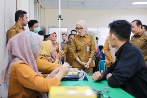 OTENTIK ( BANDARLAMPUNG ) -- Wakil Gubernur Lampung Jihan Nurlela meninjau pelaksanaan Cek Kesehatan Gratis (CKG) yang dirang ...