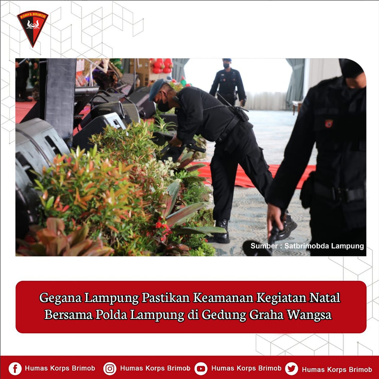 Gegana Pastikan Keamanan Kegiatan Natal Bersama Polda Lampung di Gedung Graha Wangsa