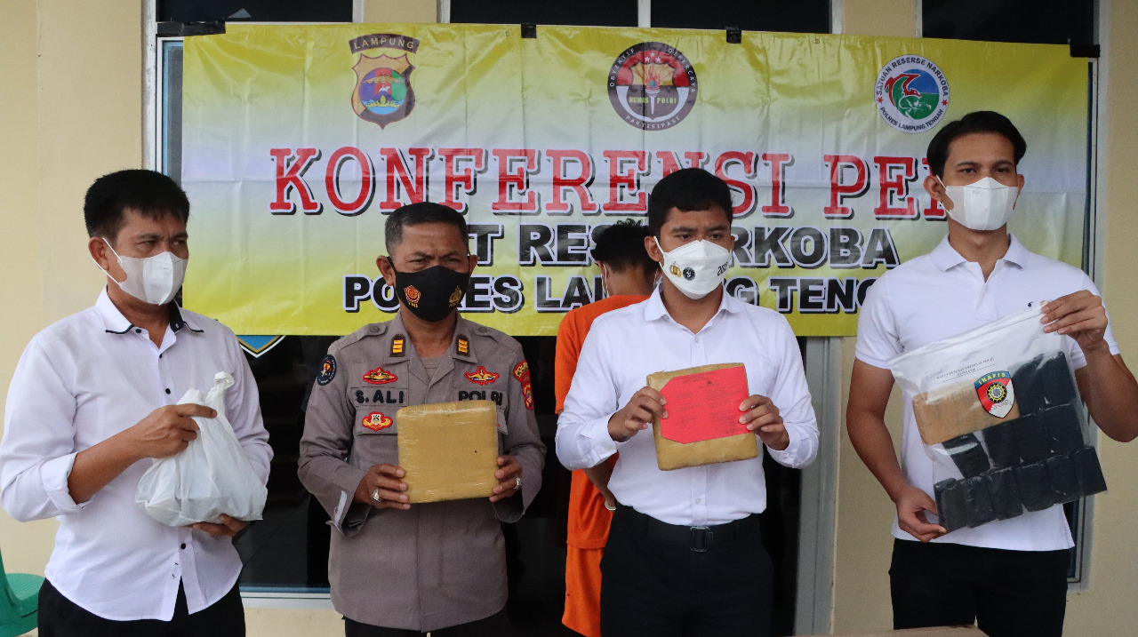 Kapolres Lampung Tengah AKBP Oni Prasetya, S.IK didampingi KBO Sat Res Narkoba