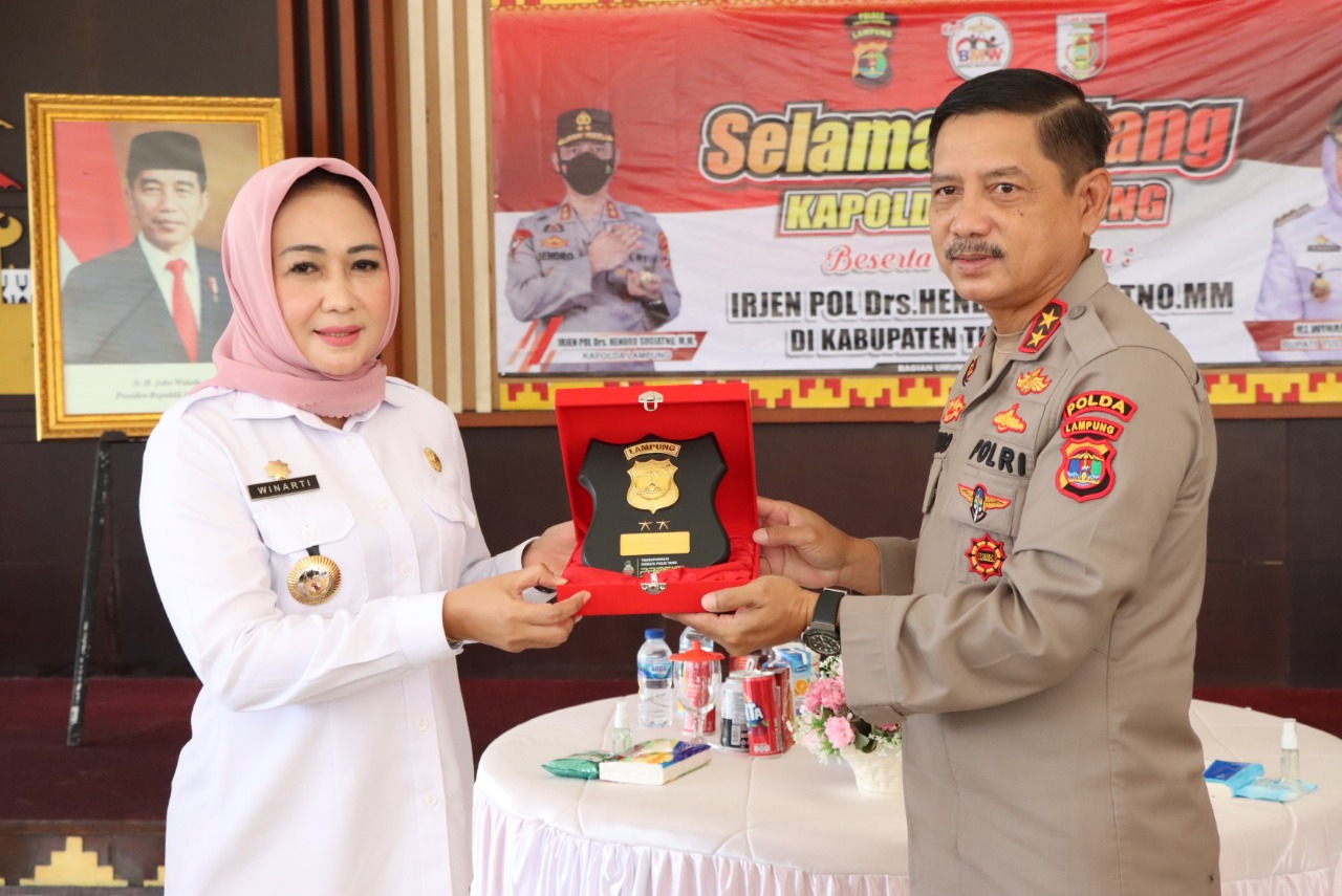 OTENTIK (TULANG BAWANG) – Kunjungan kerja Kapolda Lampung Irjen Polisi Hendro Sugiatno ke Kabupaten Tulang Bawang (Tuba) di sambung langsung oleh Bupati Winarti di pendopo rumah dinas Bupati. Kamis (12/5/2022) pagi.