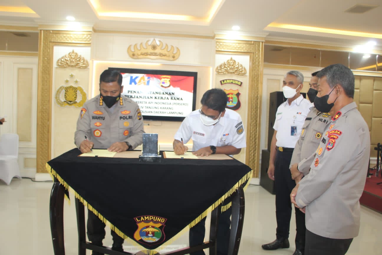 Polda Lampung Tandatangani Kerjasama Bersama PT KAI Tanjungkarang