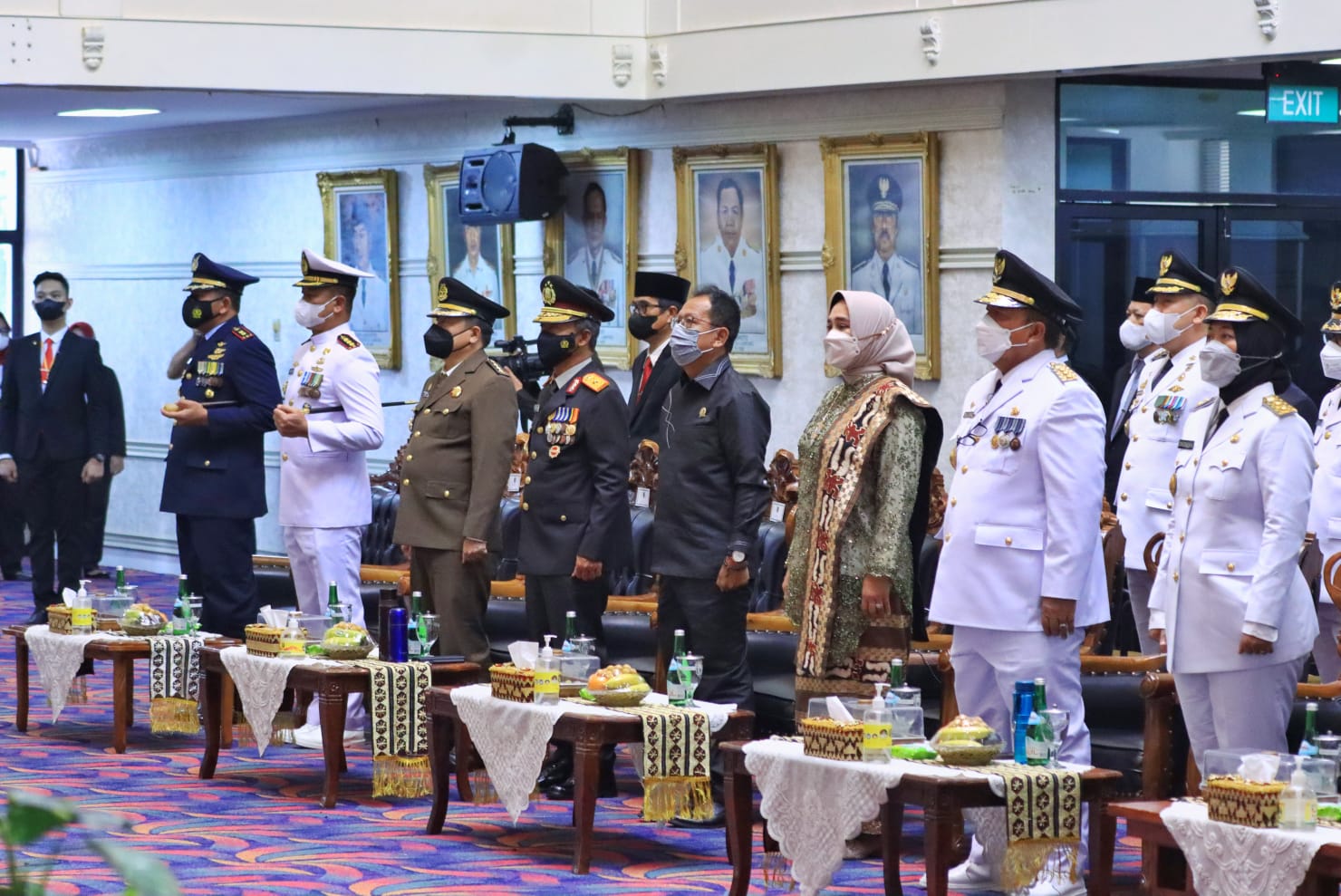 Acara yang dilaksanakan di Balai Keratun Kantor Gubernur Lampung itu dihadiri juga Forkopimda Lampung,Sekda Lampung, seluruh Kepala dinas, dan seluruh Bupati dan Wali Kota se-Lampung