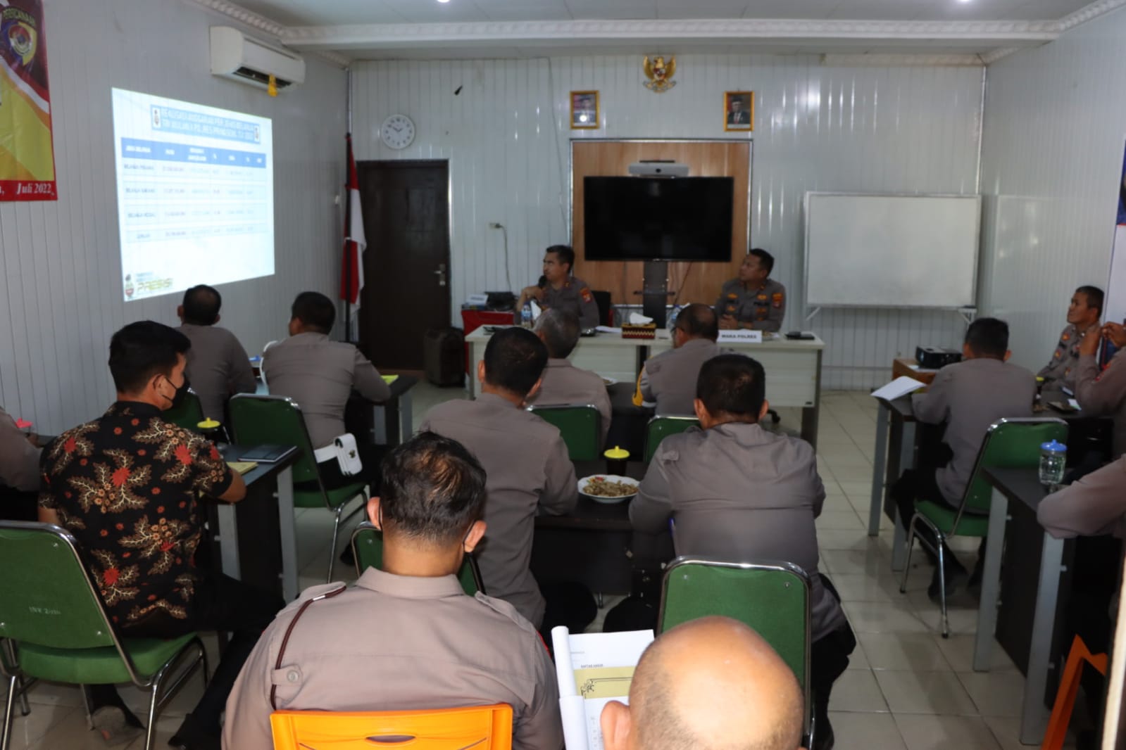 Kegiatan Anev yang berlangsung di aula Mapolres setempat, Jumat (8/7/2022), dihadiri para Kabag, Para Kasat, Kasi, kapolsek dan personil pengemban fungsi administrasi.