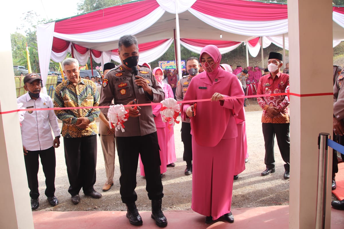 prasasti, pengguntingan pita dan pemotongan tumpeng oleh Kapolres Pringsewu