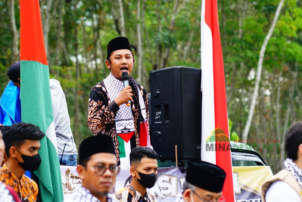 Imaam Yakhsyallah Mansur yang turut hadir dalam aksi menekankan tanah Palestina