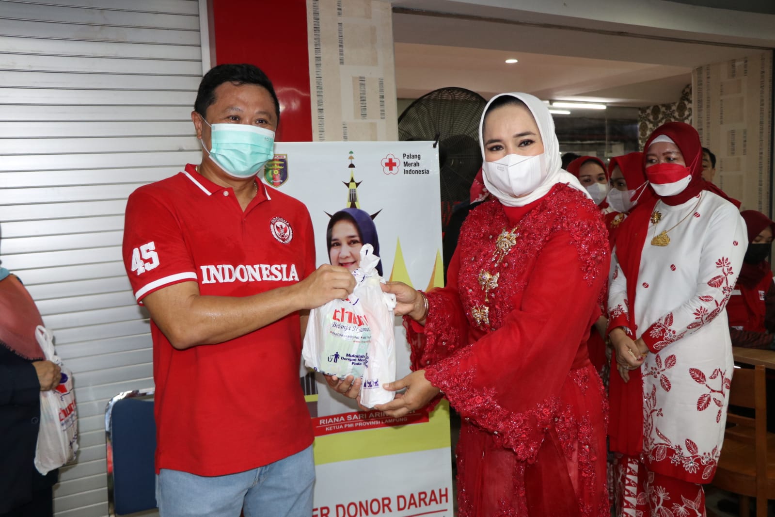 kegiatan tersebut, Ketua PMI Provinsi Lampung didampingi Ketua Dharma Wanita