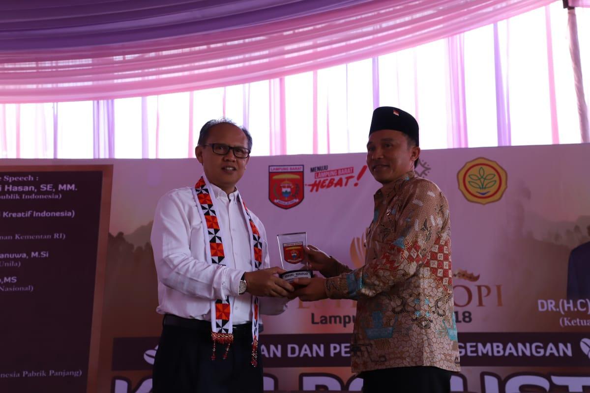 Sementara itu Direktur Pengolahan dan Pemasaran Hasil Perkebunan Ir. Dedi Junaedi M.Sc menyampaikan Saat ini Kopi menjadi salah satu komoditi unggulan yang sedang dilakukan kementerian selain kakao, Lada dan Pala. Sehingga kami sangat menyambut baik adanya Festival kopi nasional yang kabupaten Lambar gelar, dan Ini kami buktikan dengan bantuan anggaran yang sudah dikucurkan dari pusat