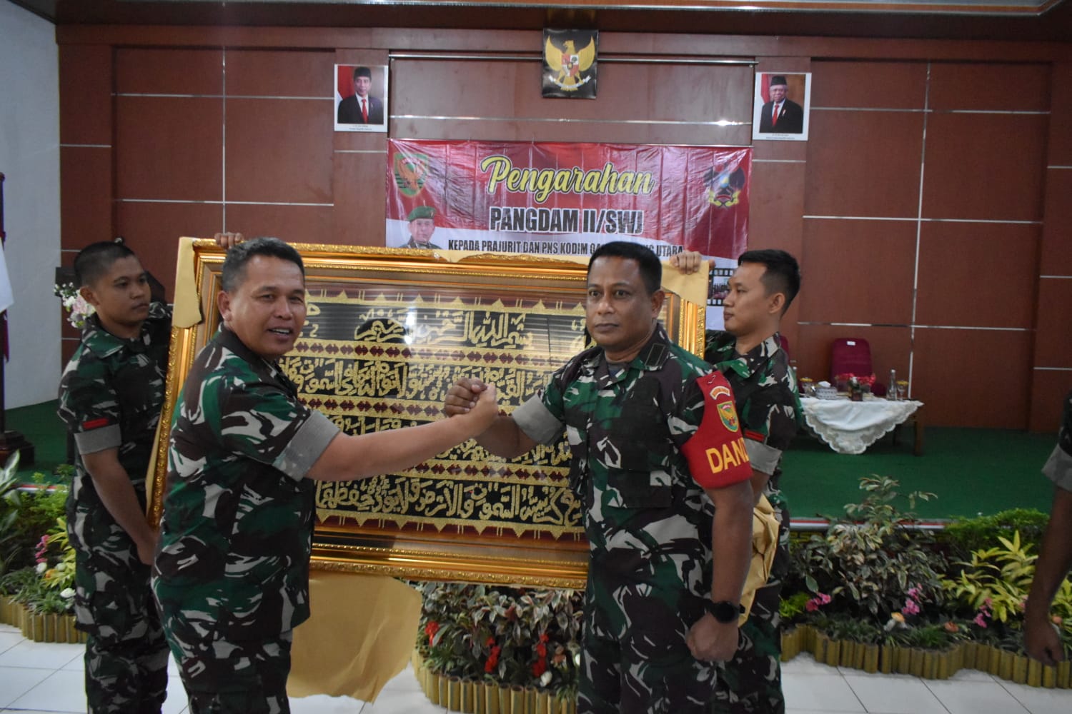 Tiba di Makodim 0412/Lampung Utara Pangdam ll/Swj beserta rombongan yang didampingi Danrem 043/Gatam Brigjen TNI Ruslan Effendy, S.I.P, disambut langsung Dandim 0412/LU Letkol Inf. Andi Sultan, S.pd., M.H., beserta unsur Forkopimda Kabupaten Lampung Utara dan Kabupaten Tulangbawang Barat.