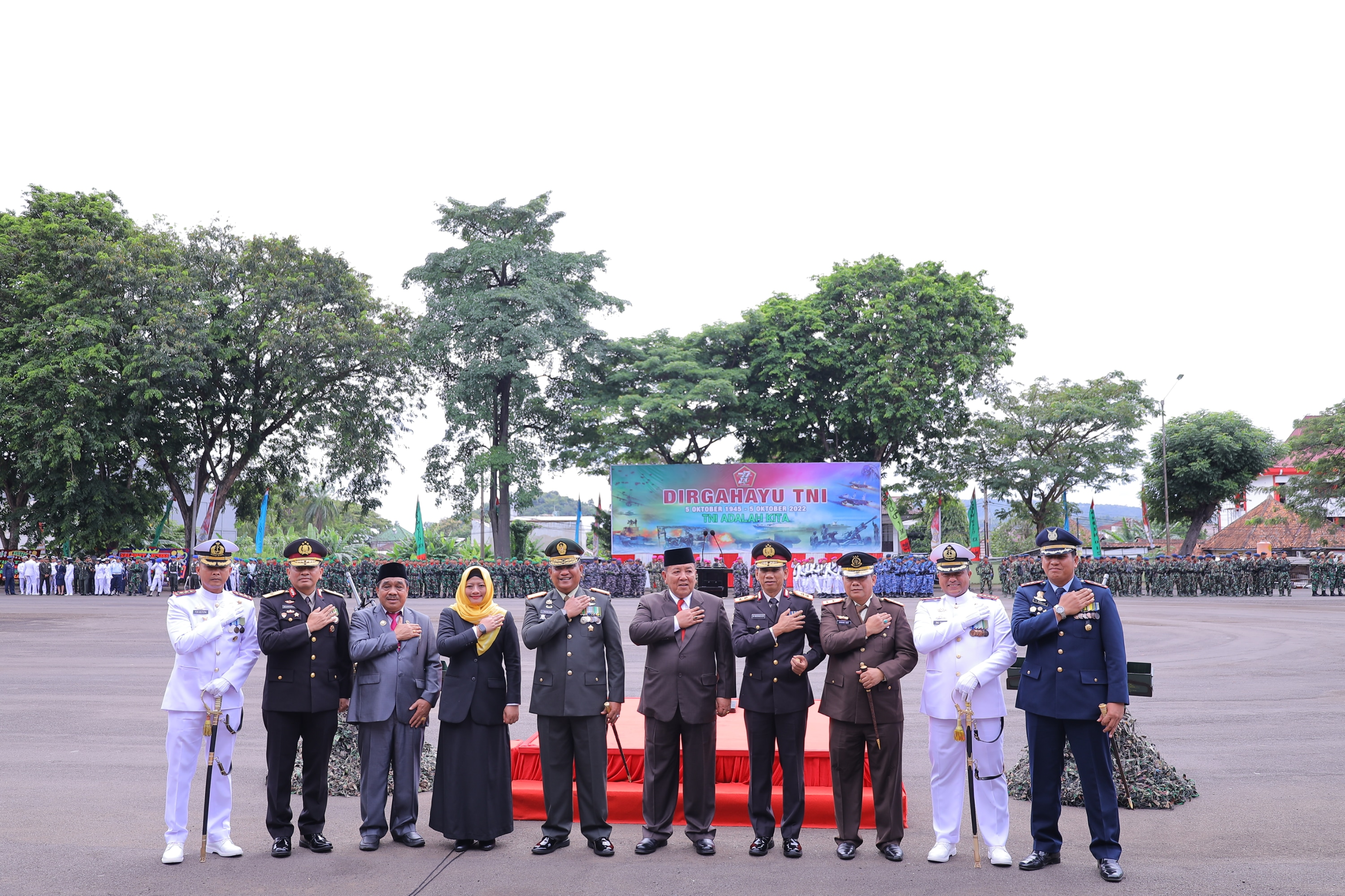 Danrem 043/Gatam Brigjen TNI Ruslan Effendy, Ia mengucapkan syukur karena menyelenggarakan upacara peringatan HUTke-77 TNI dengan tema TNI adalah Kita.