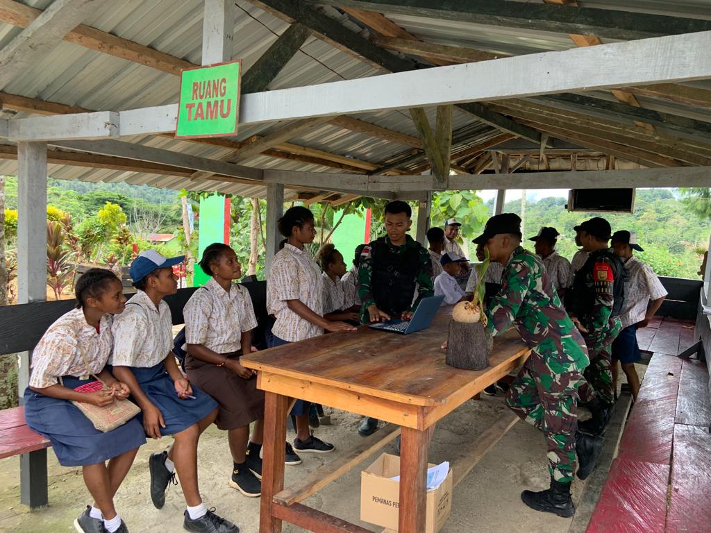 Papua, Sertu Afnan berikut anggota Posnya mengajarkan pengetahuan tentang cara