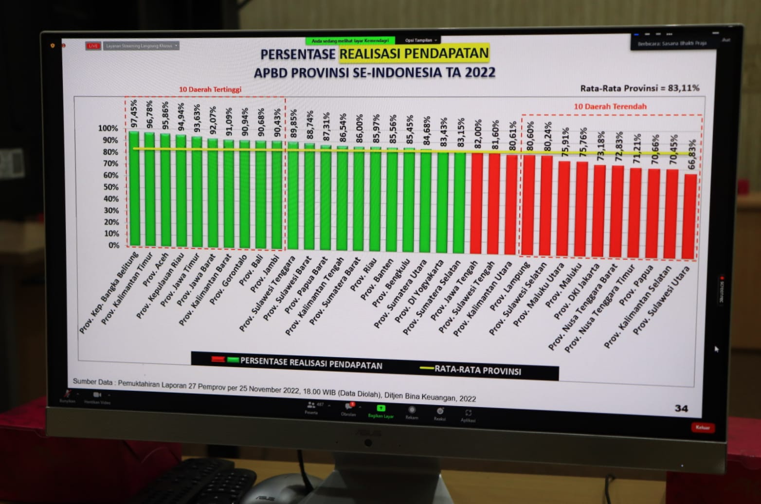 presentase 80,10% dalam presentase realisasi belanja APBD Provinsi tertinggi
