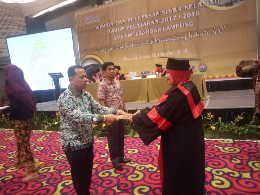Kepala sekolah SMK-SMTI Lampung Sulastri mengungkapkan bahwa hari ini SMK-SMTI mewisuda 195 siswa, yang terdiri dari 2 program studi (prodi).