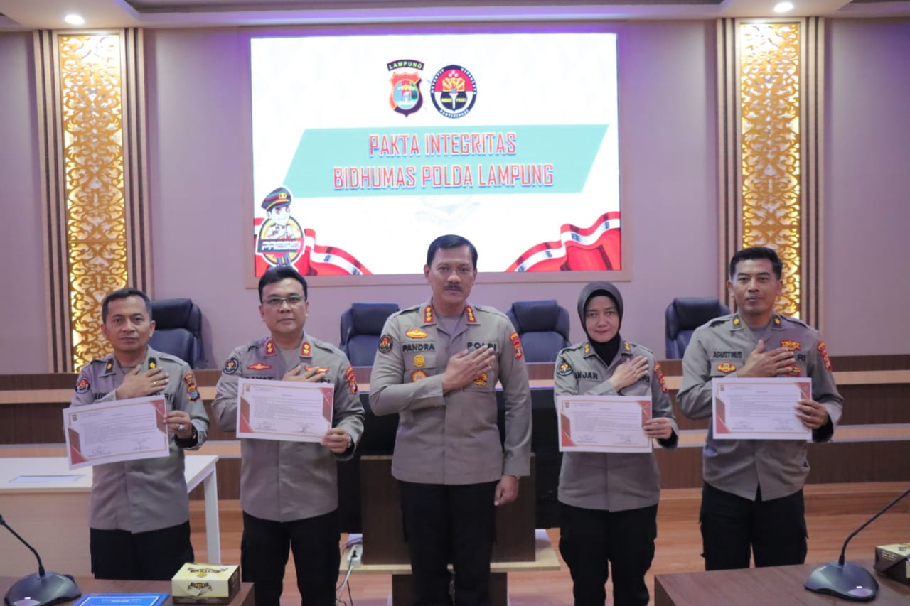 tersebut kabid Humas Polda Lampung, pimpin langsung penanda tanganan Pakta