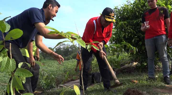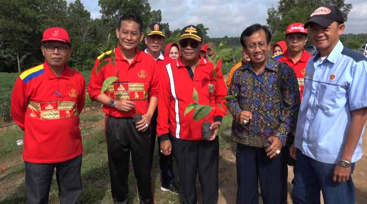 Selanjutnya usai melaksanakan senam bersama Bupati Gotong Royong ini langsung melakukan penaman pohon Akasia Karfa yang merupakan bantuan dari PT Mukti Panel Industri yang di ikuti oleh para kepala OPD dan sekertaris Dewan Perwakilan Rakyat.