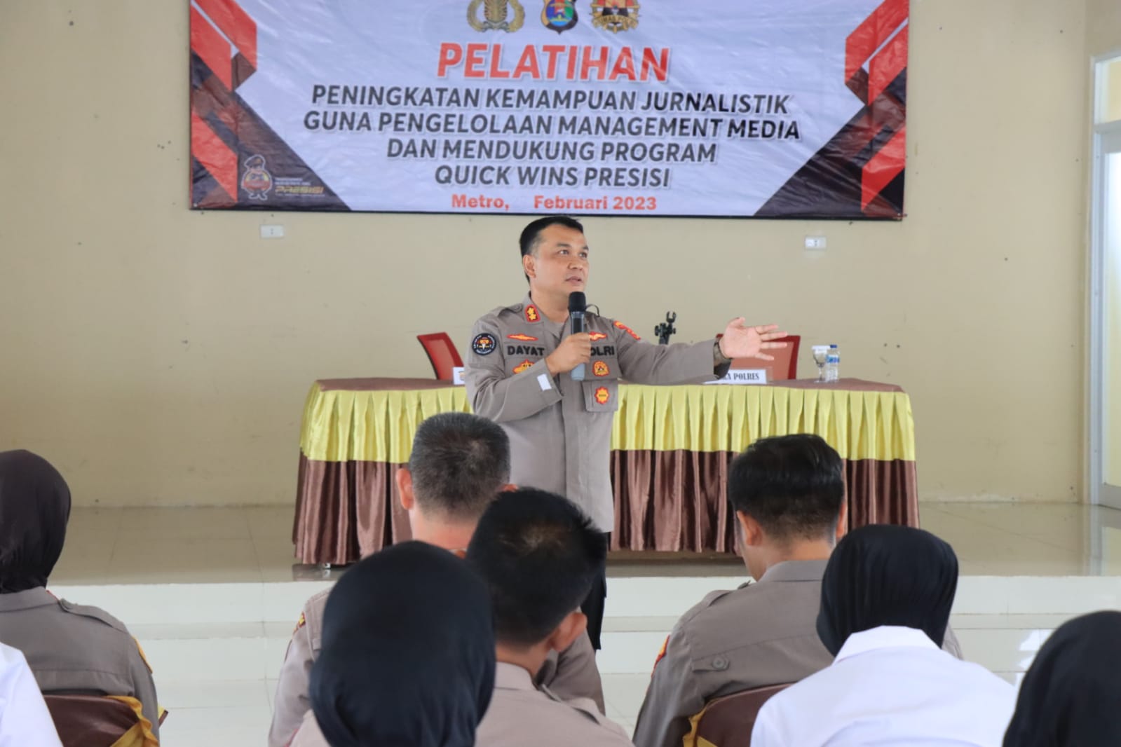 OTENTIK ( METRO ) -- Dalam rangka pengelolaan manajemen media dan mendukung program Quick Wins Presisi, Polres Metro Polda Lampung mengikuti kegiatan peningkatan kemampuan jurnalistik, Senin (27/02/23).