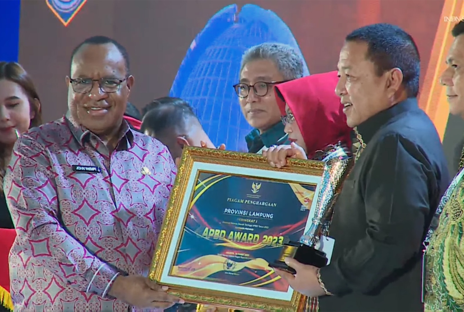 Gubernur Arinal Terima Penghargaan Provinsi Terbaik Realisasi Belanja Daerah Tertinggi Tahun 2022
