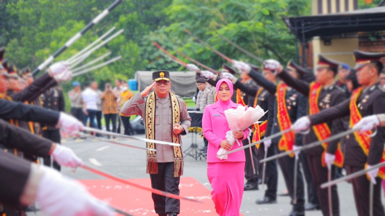 Pandra, juga menyampaikan para PJU dan Kapolres/Ta berserta pengurus Bhayangkari Lampung dan personil Polda Lampung melepaskan Irjen Pol Ahmad Wiyagus dan Bhayangkari Ny. Ges Wiyagus yang di lepas oleh Kapolda Lampung Irjen Pol Helmi Santika dan Ketua Daerah Bhayangkari Lampung Ny. Luri Helmi Santika. Katanya