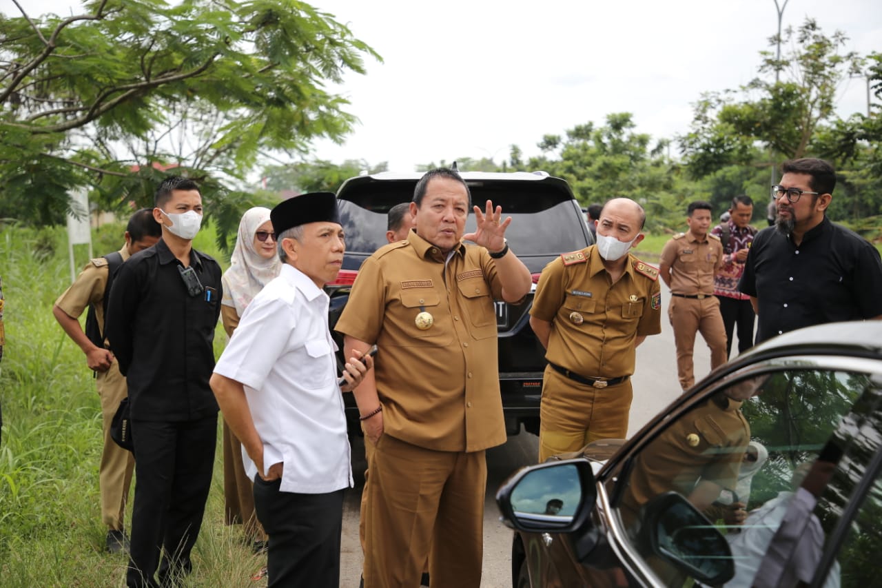 OTENTIK ( LAMPUNG ) -- Gubernur Lampung Arinal Djunaidi meninjau rencana lokasi pembangunan gerbang selamat datang atau gerbang ikonik di Jalan Terusan Ryacudu, Senin (10/4/2023).