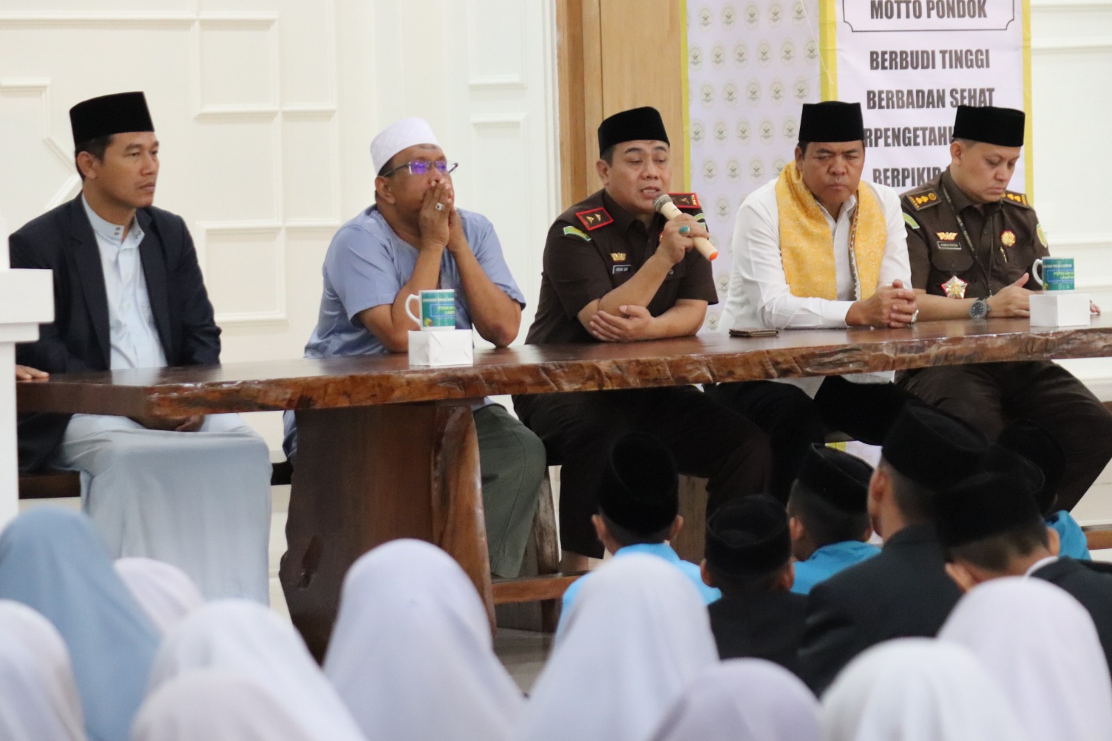 OTENTIK (LAMPUNG ) -- Kepala Kejaksaan Tinggi Lampung Nanang Sigit Yulianto, SH.MH didampingi ustad Dr. Mahmudin Bunyamin LC, M.A , Koordinator Bidang Intelijen, serta Tim Penerangan Hukum Kejaksaan Tinggi Lampung kembali memberikan Edukasi, hukum, dan juga tausiyah kepada Santriwan/Santriwati bertempat di Pondok Pesantren Yatim Piatu Penghapal Alquran Riyadhus Sholihin Bandar Lampung, dalam Program Jaksa Masuk Pesantren , 11/4/2023