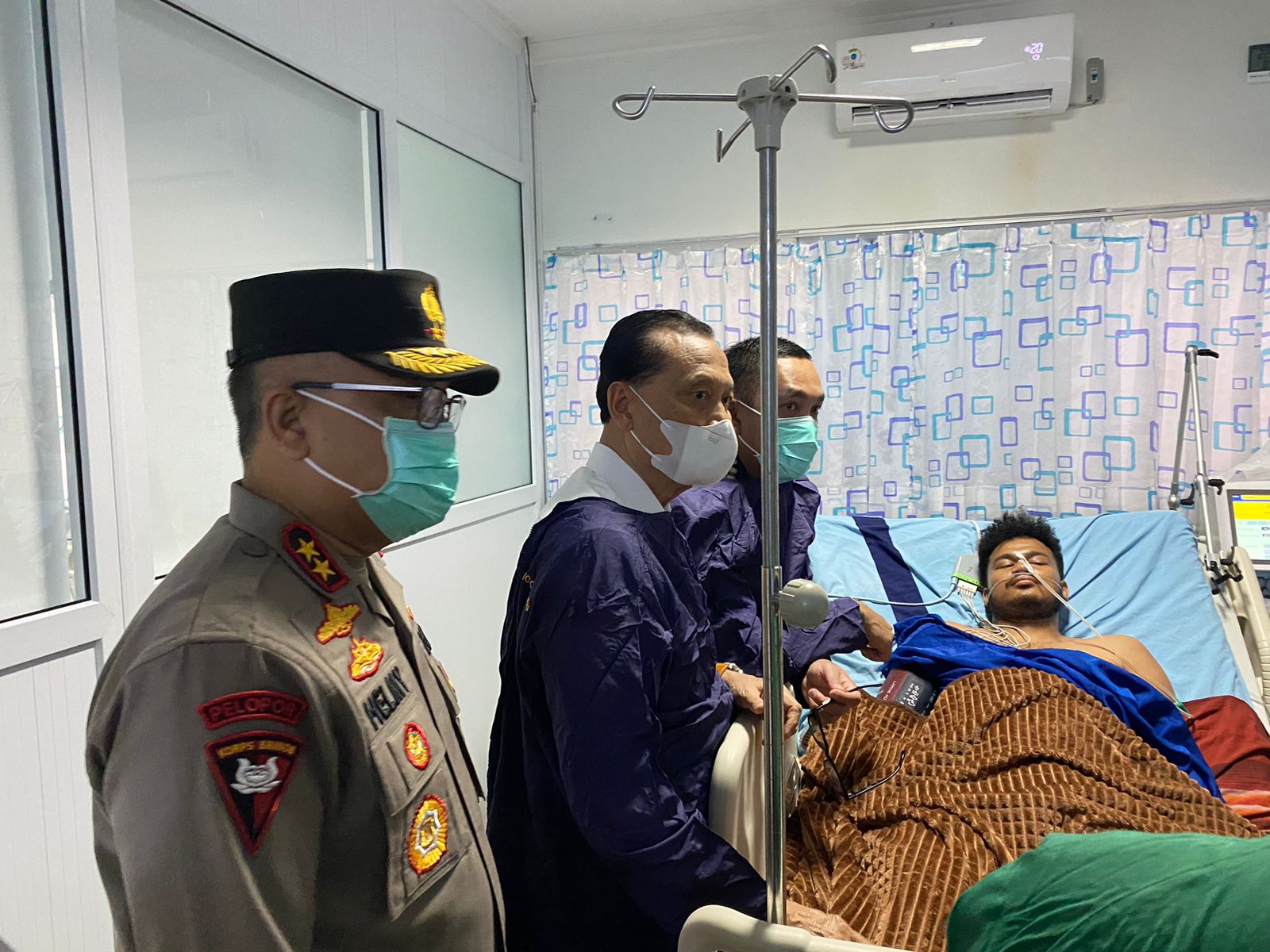 Irjen Pol Helmy Santika Sik MSi di lobi rumah sakit dan langsung menuju ruang