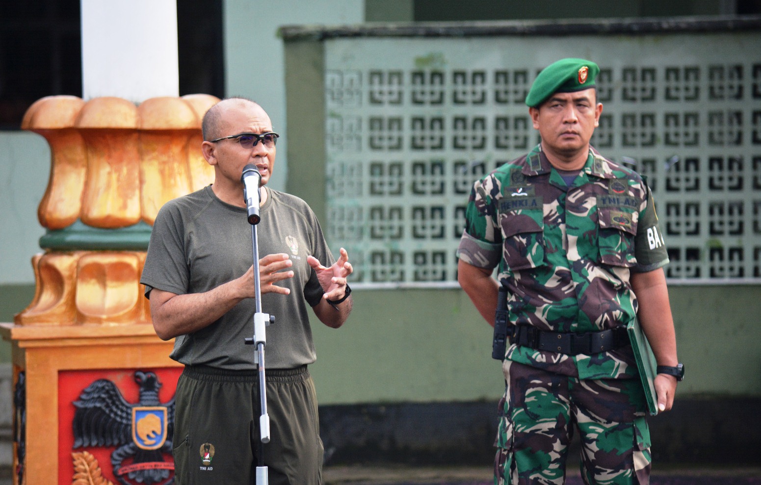 senam peregangan yang dipandu personel Jasmani Korem (Jasrem), berlanjut dengan