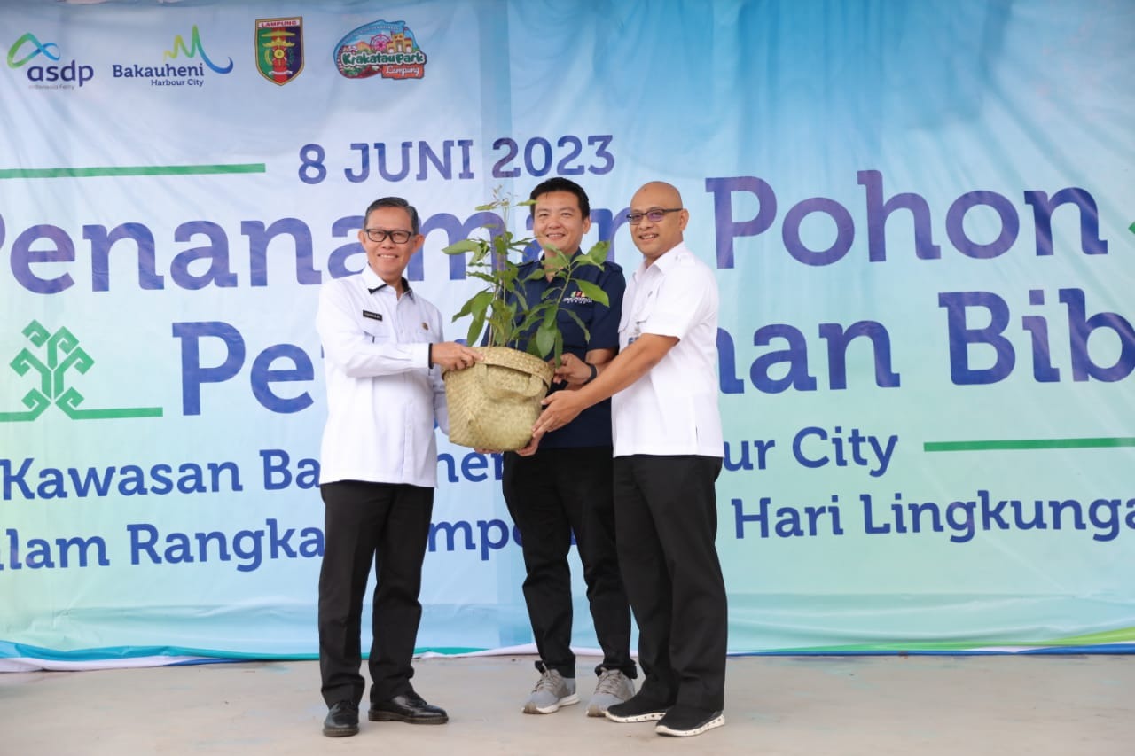 OTENTIK ( LAMPUNG ) – Pemerintah Provinsi Lampung melakukan penanaman dan penyerahan bibit pohon di Kawasan Wisata Krakatau Park Bakauheni Harbour City, Lampung Selatan, Kamis (08/06/2023), dalam Puncak Peringatan Hari Lingkungan Hidup Sedunia 2023.