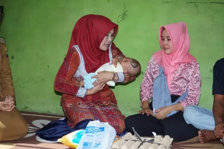 Ketua TP PKK Lampung Selatan Sambangi dan Beri Bantuan Kepada Balita Pengidap Tumor warga Kec. Palas