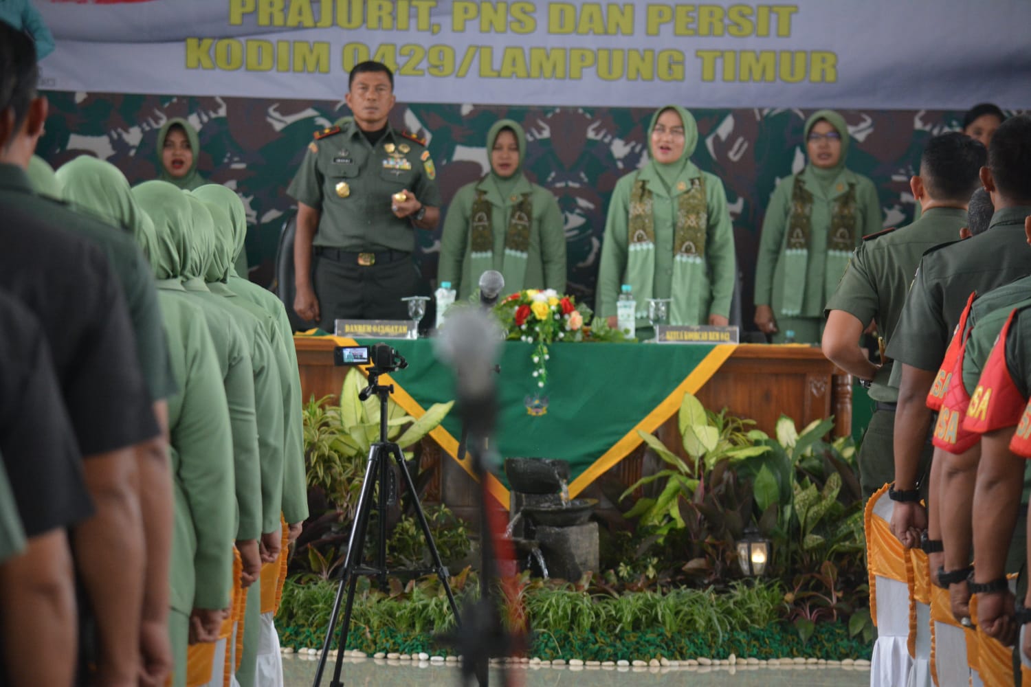 Sebelum menyampaikan arahannya Danrem mengucapkan terima kasih kepada seluruh Prajurit dan PNS serta Anggota Persit atas penyambutan yang sangat baik, dan tak lupa Danrem juga mengajak anggota Kodim 0429/Lamtim untuk selalu bersyukur dan berdo’a kepada Allah SWT, yang telah banyak melimpahkan nikmatnya kepada kita semua.