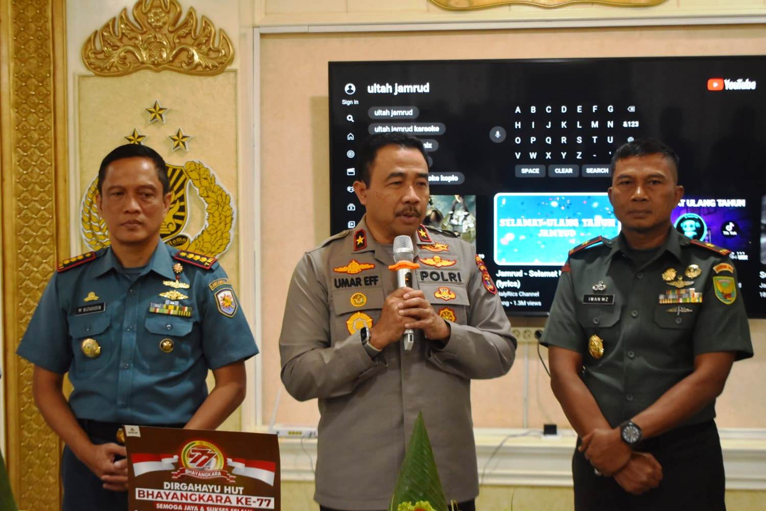 “ Mewakili prajurit TNI saya mengucapkan Selamat Hari Bhayangkara ke-77 tahun 2023, tentunya dengan sinergi dan soliditas TNI-Polri di Provinsi lampung ini, saya yakin kami dapat mengawal sekaligus menjaga pemilu dengan aman,”