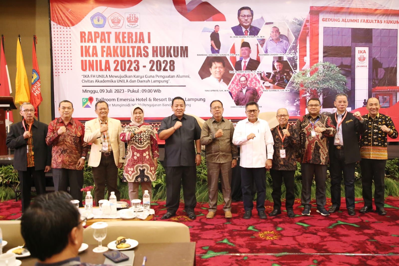 OTENTIK ( LAMPUNG ) -- Alumni Fakultas Hukum Universitas Lampung, Mingrum Gumay hadiri Rapat Kerja (Raker)I Ikatan Alumni (IKA) yang dilaksanakan di Ballroom Emersia Hotel, Minggu (09/07/2023).
