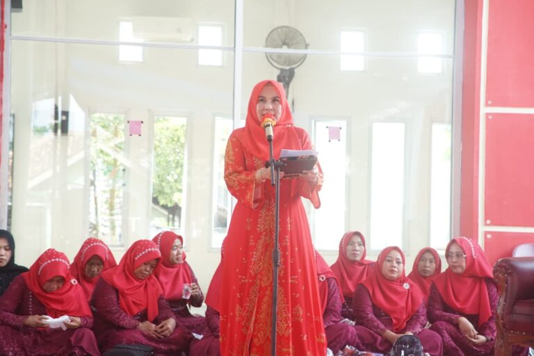 OTENTIK ( LAMSEL ) -- Ketua Tim Penggerak PKK Kabupaten Lampung Selatan Hj. Winarni Nanang Ermanto menghadiri Pengajian Rutin Badan Kontak Majelis Taklim (BKMT) Kecamatan Palas, Rabu (19/07/2023).