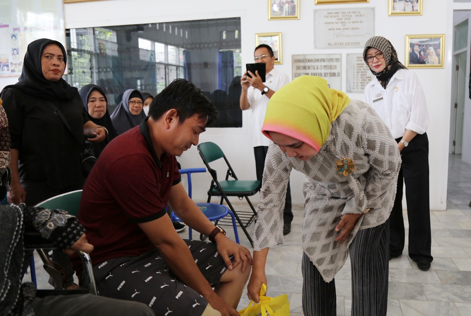 OTENTIK ( BANDARLAMPUNG )--- Ketua Umum Persatuan Komunitas Disabilitas Provinsi Lampung (PKDL) Ibu Riana Sari Arinal menyerahkan alat bantu kaki palsu dan kursi roda kepada masyarakat penyandang disabilitas, di Lembaga Kesejahteraan Sosial (LKS) Yayasan Citra Baru Lampung, Perum Korpri, Kelurahan Korpri Raya, Kecamatan Sukarame, Rabu (2/8/2023).