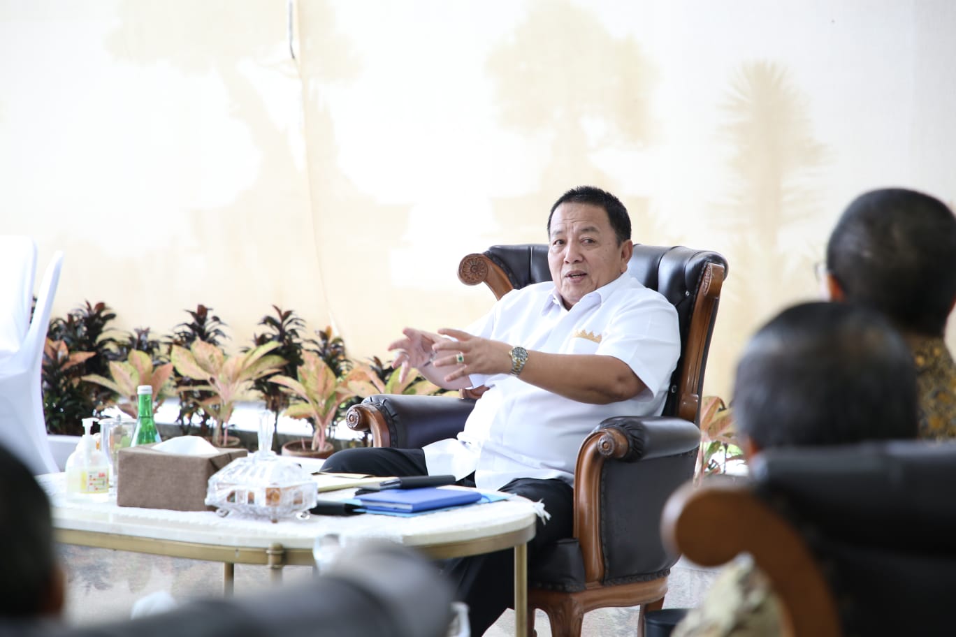 OTENTIK ( BANDARLAMPUNG ) -- Gubernur Lampung Arinal Djunaidi menerima Audiensi Pengurus Lembaga Pengembangan Triptaka Gatha (LPTG) dari Umat Budha, di Mahan Agung, Bandar Lampung, Kamis (3/8/2023).