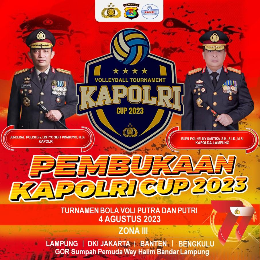Polda Lampung, Polda Banten, Polda Bengkulu dan Polda Metro Jaya, masuk dalam zona III penyelenggaraan Volleyball Kapolri Cup 2023, yang akan laksanakan pada tanggal tanggal 4-7 Agustus 2023 di PKOR Way Halim. Volley Ball ini di ikuti oleh pemain pro liga, serta di meriahkan oleh hiburan dan dapat disaksikan oleh masyarakat secara gratis.