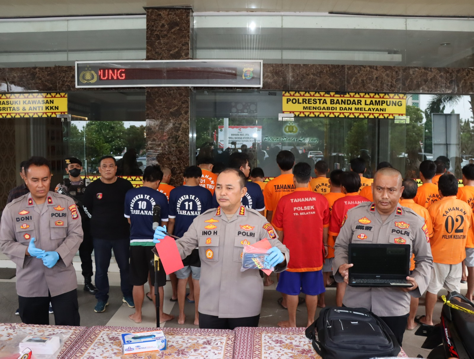 Kapolresta Bandar Lampung Kombes Pol Ino Harianto, S.I.K., M.M., saat konferensi pers mengungkapkan bahwa ini merupakan bentuk komitmen Polresta Bandar Lampung dan Jajaran dalam mengungkap kasus kasus konvensional seperti pencurian dengan pemberatan (curat), Pencurian dengan kekerasan (curas) dan Pencurian kendaraan bermotor (curanmor) yang terjadi di wilayah Kota Bandar Lampung khususnya selama kurun waktu bulan Juli.