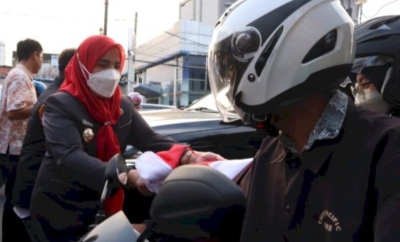 "Pembagian bendera ini juga untuk menumbuhkan rasa cinta tanah air. Selain di jalan, kami juga bagikan ke masyarakat umum melalui pamong," kata Eva Dwiana.