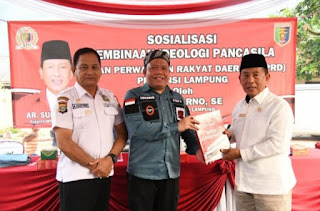 OTENTIK ( BANDARLAMPUNG ) -- Anggota DPRD Provinsi Lampung, AR Suparno melaksanakan sosialisasi Pembinaan Ideologi Pancasila di Kelurahan Keteguhan Kecamatan Teluk Betung Timur Kota Bandarlampung, Sabtu (12/8/2023).