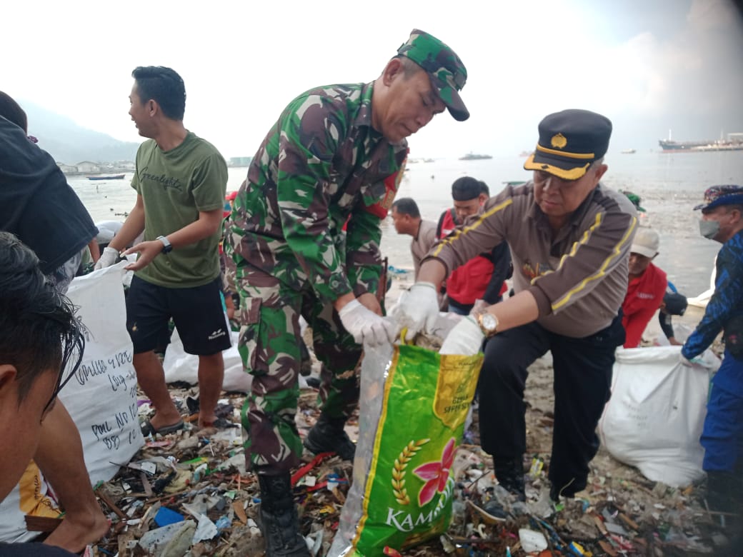 " Hari ini, kami dari Koramil Panjang ikut bersama-sama komponen lainnya membersihkan pantai di Kabarti," kata Mayor Sinaga.