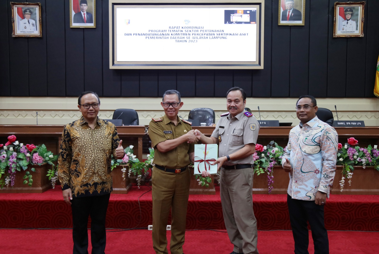 Pada acara ini juga dilakukan penyerahan Sertifikat Aset Pemda oleh Badan BPN Provinsi Lampung oleh Kakanwil BPN Provinsi Lampung Kalvin Andar Sembiring kepada Sekdaprov Lampung Fahrizal Darminto, disaksikan oleh Kasatgas Direktorat Koordinasi dan Supervisi KPK RI Wilayah Lampung, Sumsel, dan Babel, serta Direktur Utama BPN Sri Pranoto.