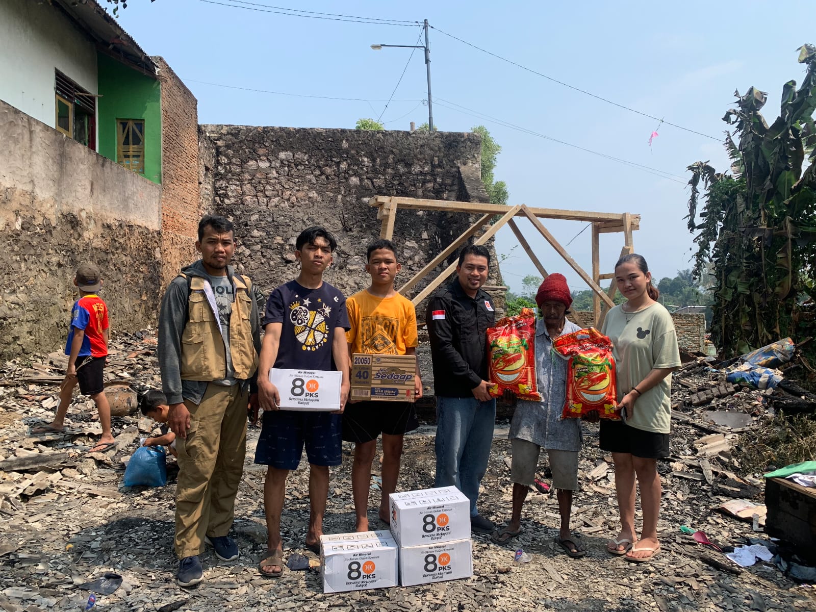 OTENTIK ( BANDARLAMPUNG ) -- Ketua Gema Keadilan Kota Bandar Lampung Agus Widodo membantu korban kebakaran, Ibu Supiyah di RT 06 Tanjung Gading kecamatan Kedamaian.Rabu (23/08/2023)