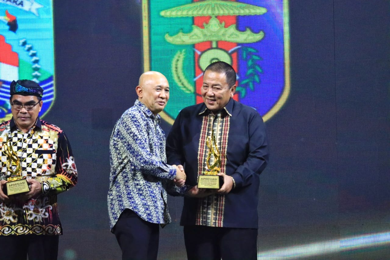 OTENTIK ( JAKARTA ) -- Gubernur Lampung Arinal Djunaidi menerima penghargaan dari Kompas TV sebagai Provinsi atau Daerah yang Peduli terhadap Pengembangan Usaha Mikro Kecil dan Menengah (UMKM) dan Potensi Sumber Daya Lokal pada malam puncak peringatan HUT ke-12 Kompas TV di Golden Ballroom, Hotel The Sultan, Senin (11/09/2023).