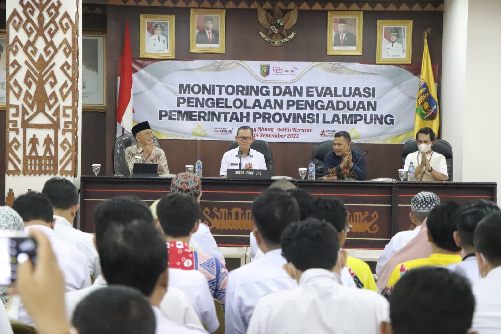 Monitoring dan evaluasi Pengelolaan Pengaduan Pemerintah Daerah Provinsi Lampung juga dihadiri oleh beberapa narasumber dari Kemenpan-RB, Kemendagri, Kemenkominfo, Ombudsman RI, dan Kantor Staf Presiden.
