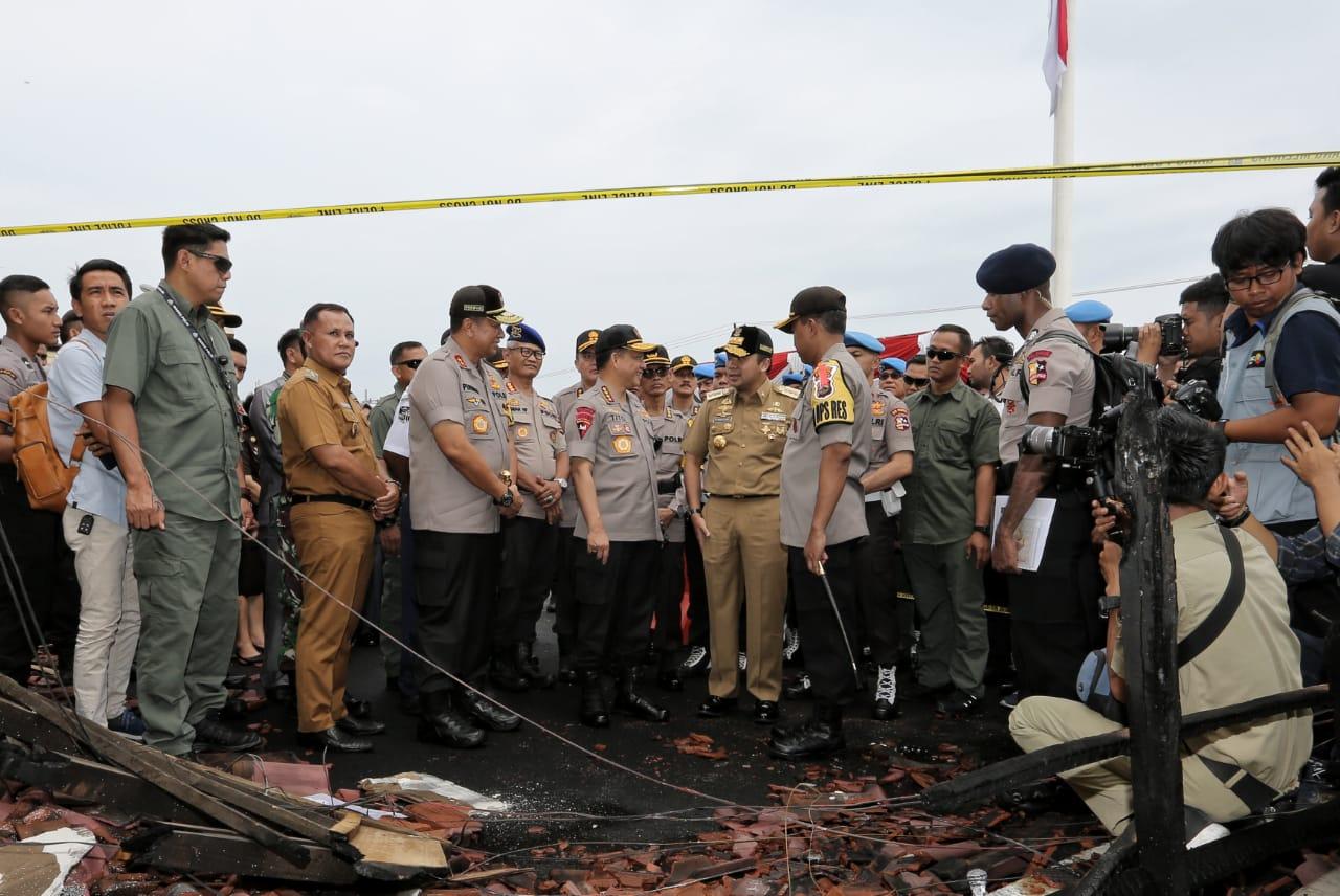 Rombongan Kapolri bersama jajaran perwakilan Mabes Polri meninjau langsung lokasi kebakaran yang terletak di Jl. Soekarno Hatta Bypass, jalur Lintas Lamsel, hangus berikut seisinya pada hari Kamis (2/5/2019) lalu.
