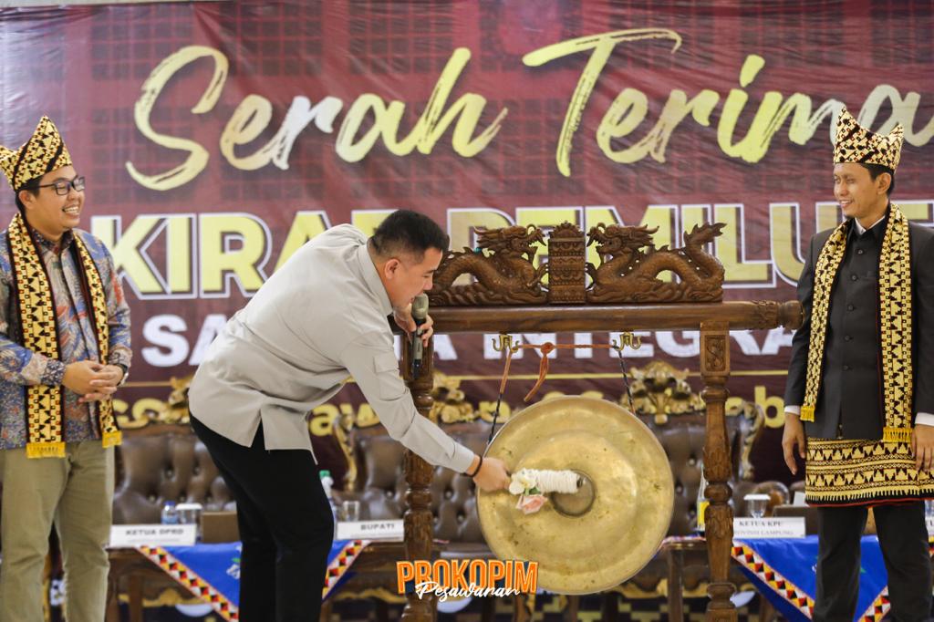 Bupati Dendi sebagai Pembina Politik di Bumi Andan Jejama mengucapkan terima kasih kepada KPU Kabupaten Pringsewu yang sudah menghantarkan Pataka ke Kabupaten Pesawaran.